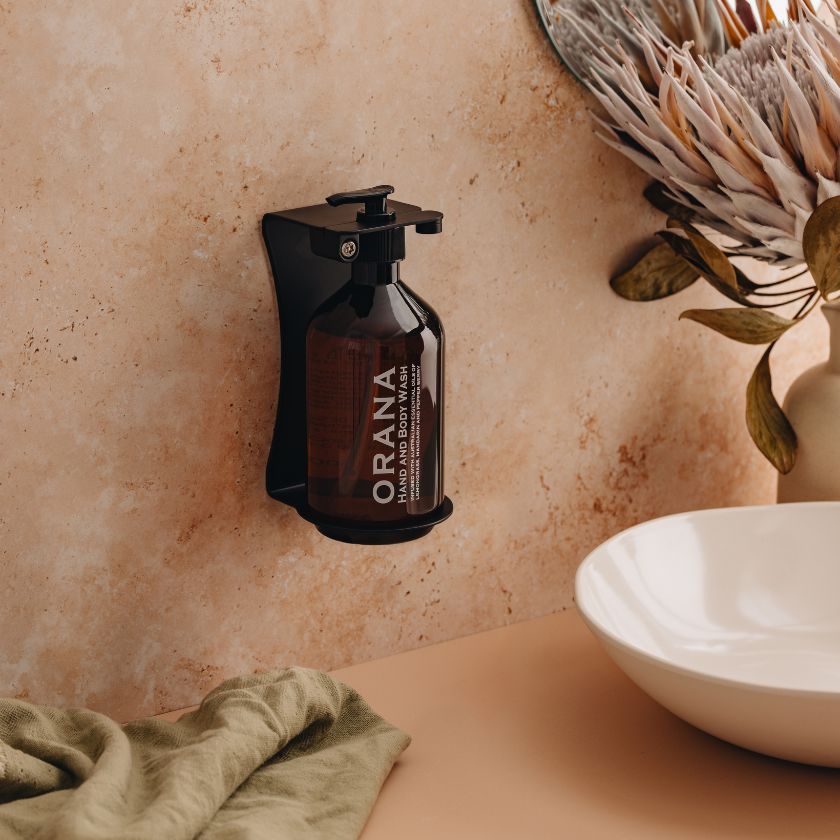 To care for the environment, the ORANA collection incorporates several innovative eco-initiatives. All ORANA bottles are recyclable and the 500ml versions are refillable to help eliminate the use of single-use plastics. Our innovative, tamper-proof polycarbonate brackets are available to mount the 500ml bottles to your walls with screws, silicone or 3M tape.