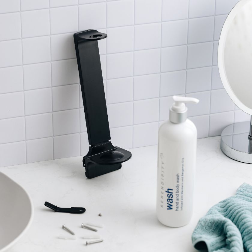 Each mini bracket comes with 3M adhesive already attached, simply peel and place the bracket where desired! The 300ml – 360ml collections that are compatible with the mini bracket are designed to easily slide into the bracket and lock into place. Each bottle also has a semi-transparent visibility strip on the side so you can monitor the product fill level.